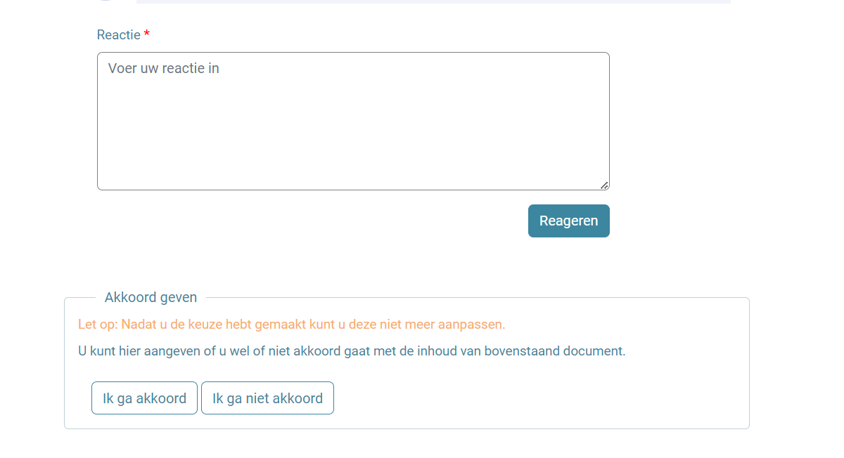 Als u op het papiertje met het potloodje klikt, krijgt u het volgende scherm te zien waarin u akkoord kunt geven: